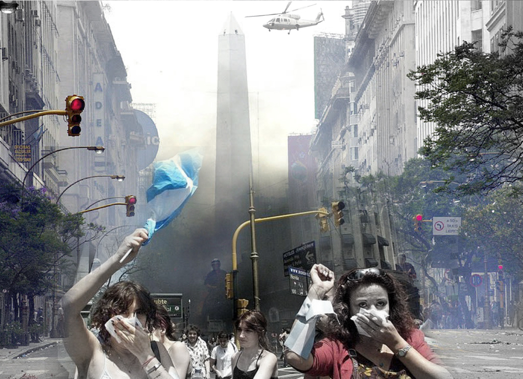 La clase media porteña, luego de ingresar en la desobediencia civil, comenzó a movilizarse pacífica y espontáneamente. Cacerolas en mano y al grito de “que se vayan todos”, copó la Plaza de Mayo. Luego vino la represión policial, el caos institucional y la entrega de la renuncia de De la Rúa (una carta de tres párrafos escrita a mano), quien abandonó la Casa Rosada en helicóptero, por la terraza, de la misma forma en que lo hizo la entonces presidenta Isabel Perón durante el golpe de estado del 24 de marzo de 1976.